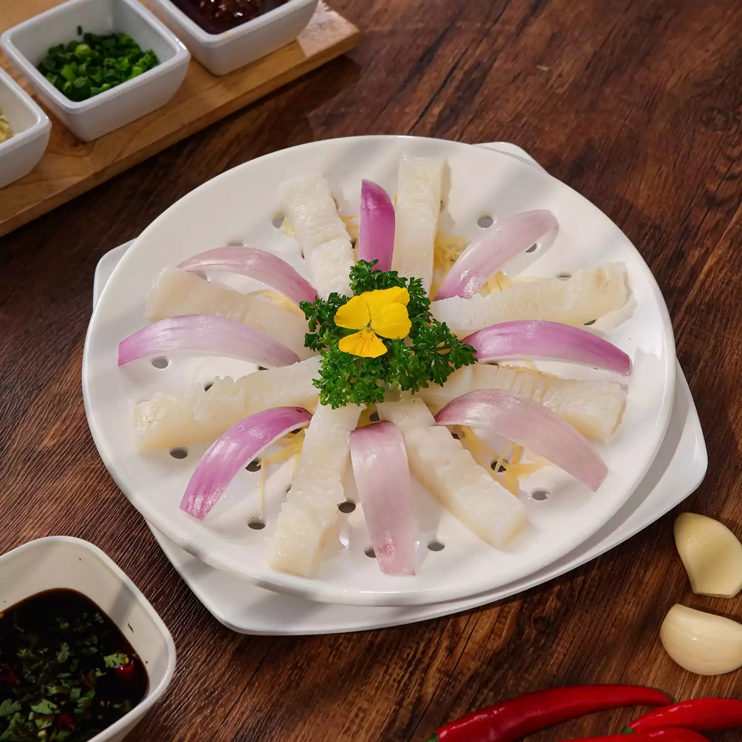 Bầu hấp nhân tôm là món ăn thanh đạm với lớp bầu non mềm mịn bao lấy phần nhân tôm tươi ngọt, thấm vị, tạo nên hương vị dịu dàng, thanh mát và đầy tinh tế. Sự kết hợp nhẹ nhàng giữa rau củ và hải sản mang lại cảm giác cân bằng, thích hợp cho những thực khách yêu thích ẩm thực thanh tao và giàu dưỡng chất.